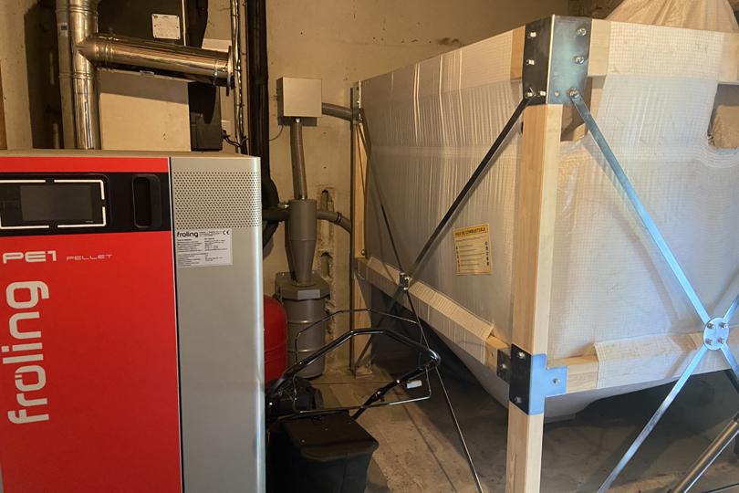 Chaufferie (avec chaudière à pellets et réservoir) / Garage |