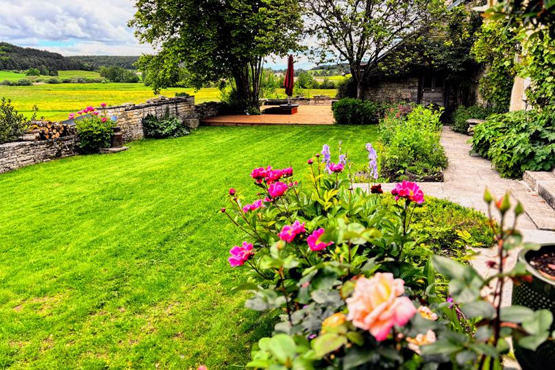 Terrain clos, arboré et entretenu avec notamment le jardin autour de la terrasse (264 m²) et celui en contrebas avec verger (520 m²) |